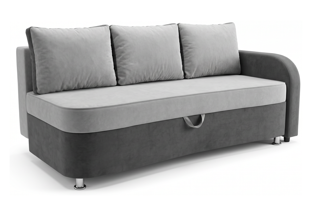 Прямой диван Волна с одним подлокотником правая велюта светло-серый/темно-серый