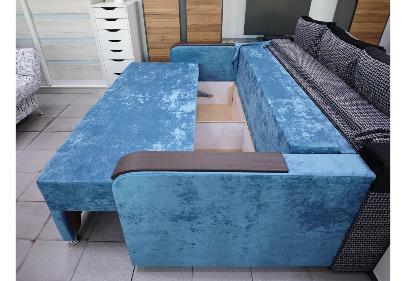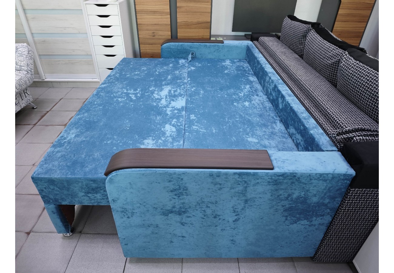 В наполнении используется ППУ на блоке пружин повышенной комфортности «Боннель». Диван раскладывается, в источниках для этой модели указаны механизмы еврокнижка, пантограф и выкатной.