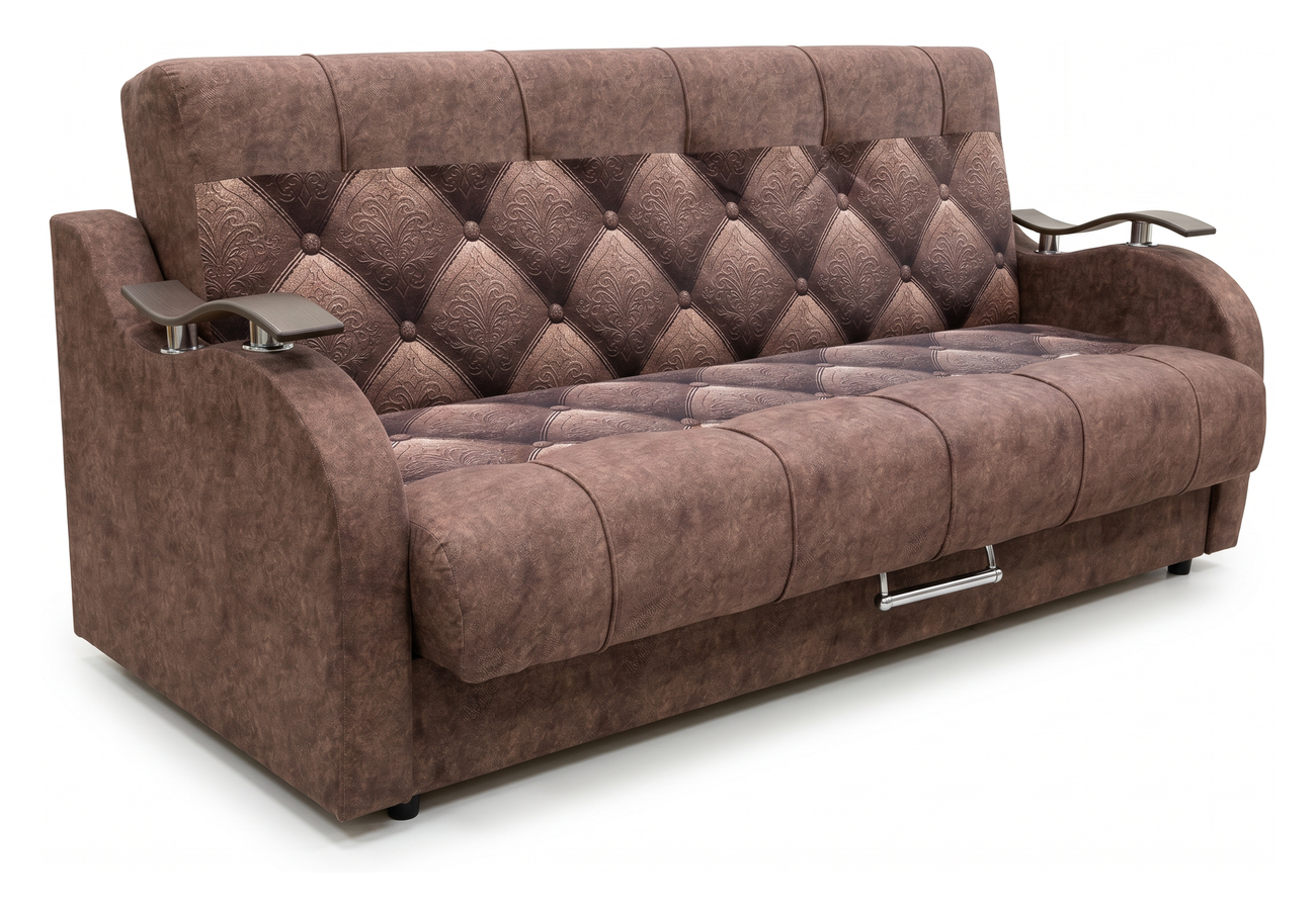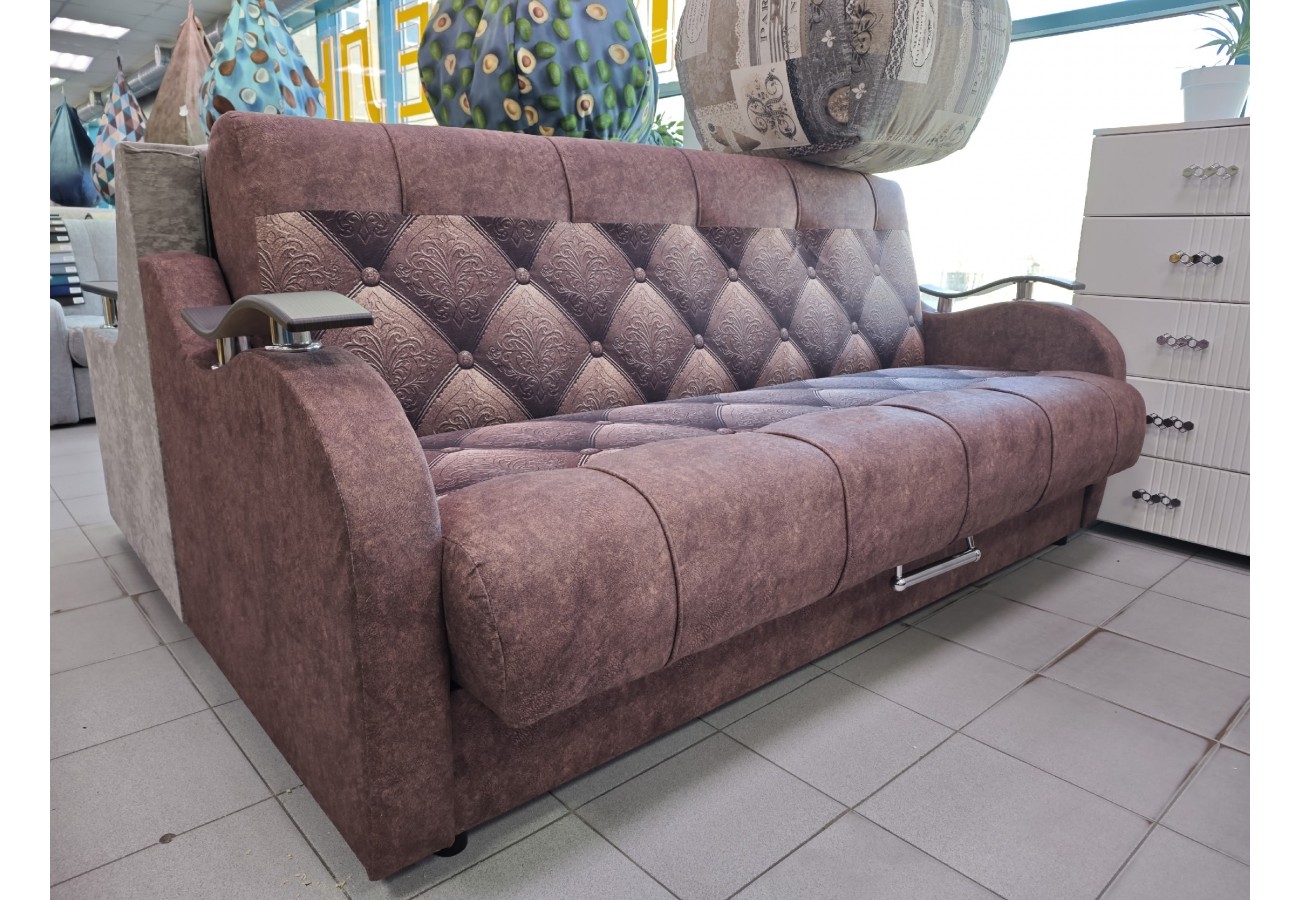 Габаритные размеры дивана составляют 214 х 96 х 98 см, спальное место — 125 х 190 см. Под сиденьем расположен вместительный ящик для хранения постельных принадлежностей и других вещей.