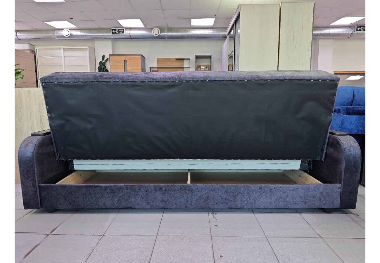 Механизм трансформации — книжка. Размер дивана: 219 х 100 х 92 см, размер спального места — 126 х 192 см. Под сиденьем предусмотрен бельевой ящик с подъемным механизмом.