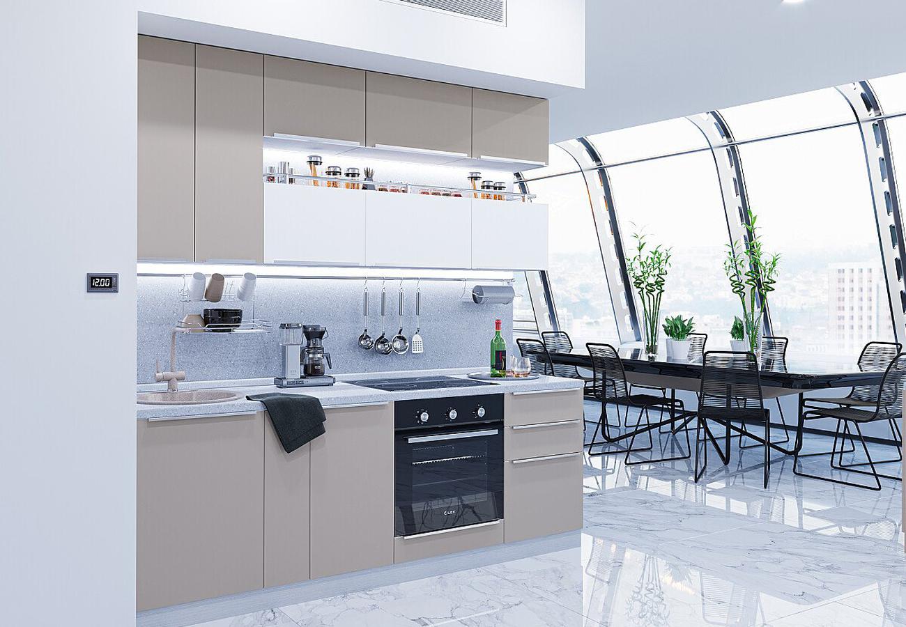 Кухонный гарнитур Фьюжн-01 Silky Grey/Silky White, Белый 230 см