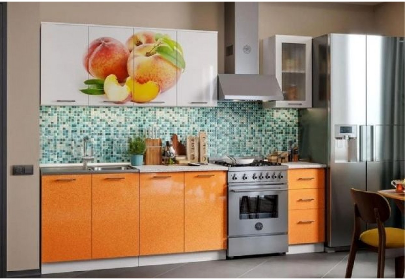 Кухня Персик 2,0м белый глянец холодный, манго металлик